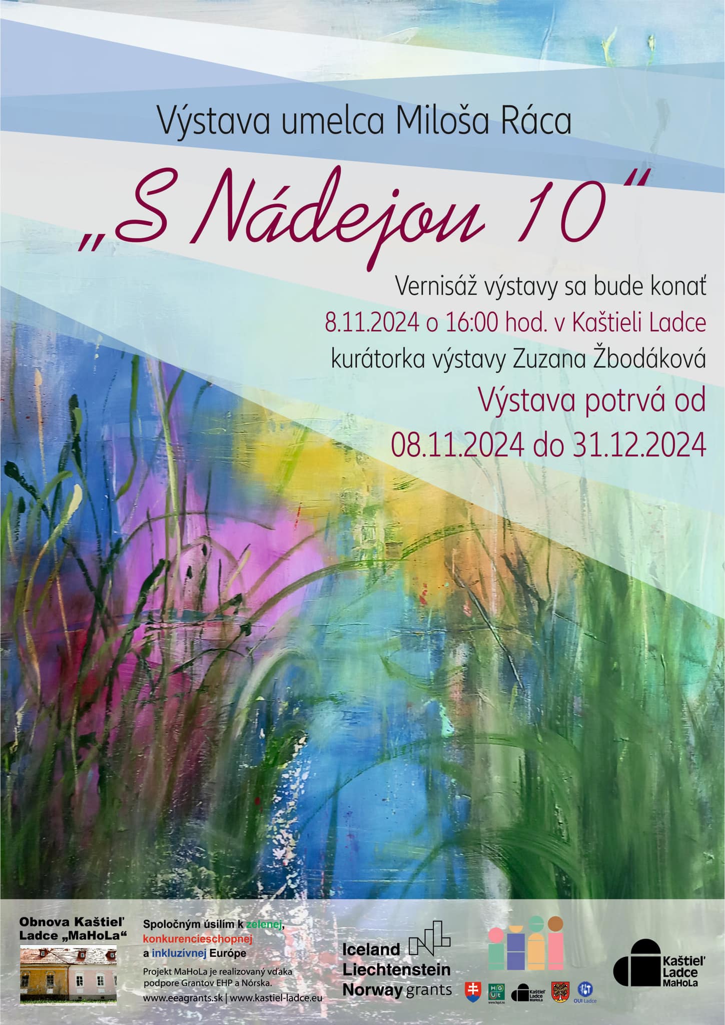 "With Hope 10" where the artist Miloš Rác will present his beautiful works at Ladce Castle (Mahola) on November 8, 2024 at 16:00. 🍀