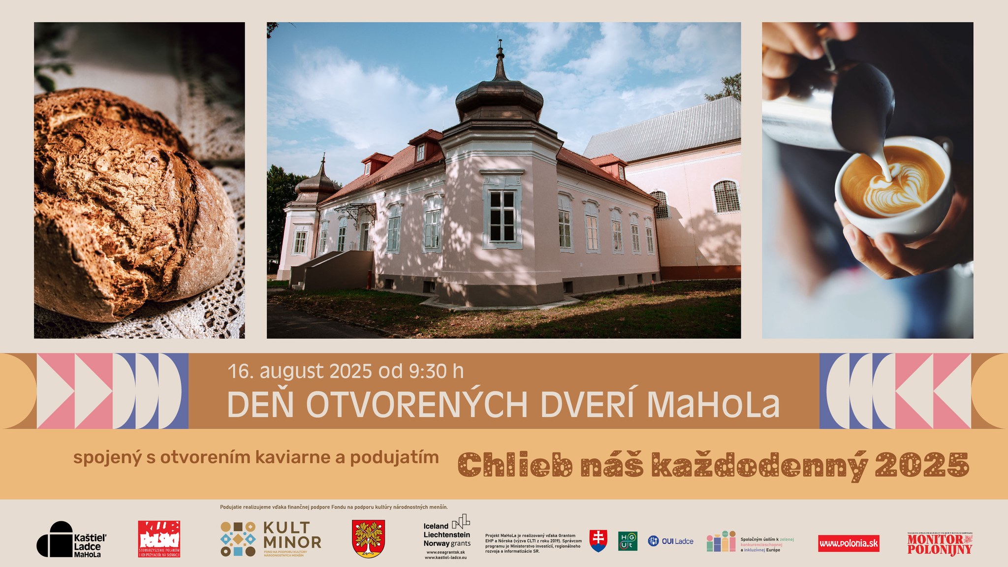 Die Parallelen zwischen der polnischen und slowakischen Brotkultur werden wir erneut bei der Veranstaltung Chlieb náš každodenný hervorheben. Nach der erfolgreichen Zusammenarbeit mit dem MaHoLa-Team im letzten Jahr werden wir auch dieses Jahr in den Innenhof des Schlosses Motešickí in der Gemeinde Ladce ziehen, bekannt für sein Zementwerk und den jüngsten Wallfahrtsort in der Slowakei (das Felsheiligtum der Barmherzigkeit Gottes auf dem Butkov-Berg).