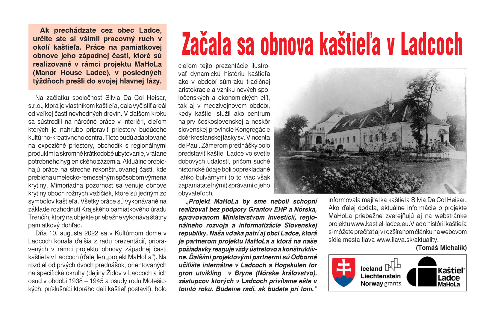 On behalf of the owner of the manor house, I would like to thank the municipality of Ladce not only for providing the municipal office space, but also for the space for a delicious lunch. Thanks to the understanding of all the participants, the seminar was held in a friendly, informal atmosphere, which not only enhanced the experience of the speakers, but also contributed to gaining information on innovative approaches to cultural heritage, which we will certainly use in the restored part of the Ladce manor house. Anyone with suggestions on what could be used in the manor house will be happy to visit the project website www.kastiel-ladce.eu or contact us via email This email address is being protected from spambots. You need JavaScript enabled to view it..