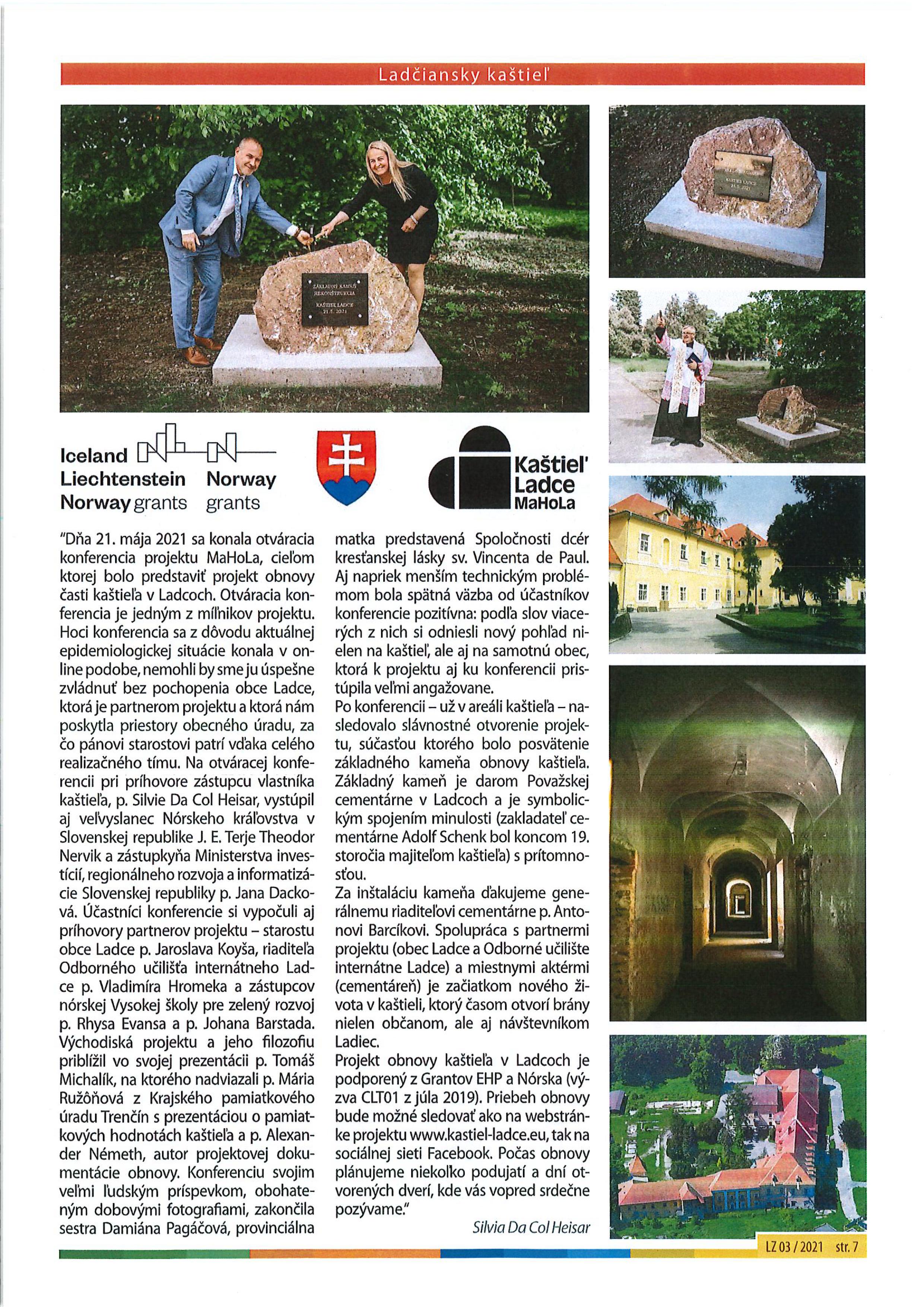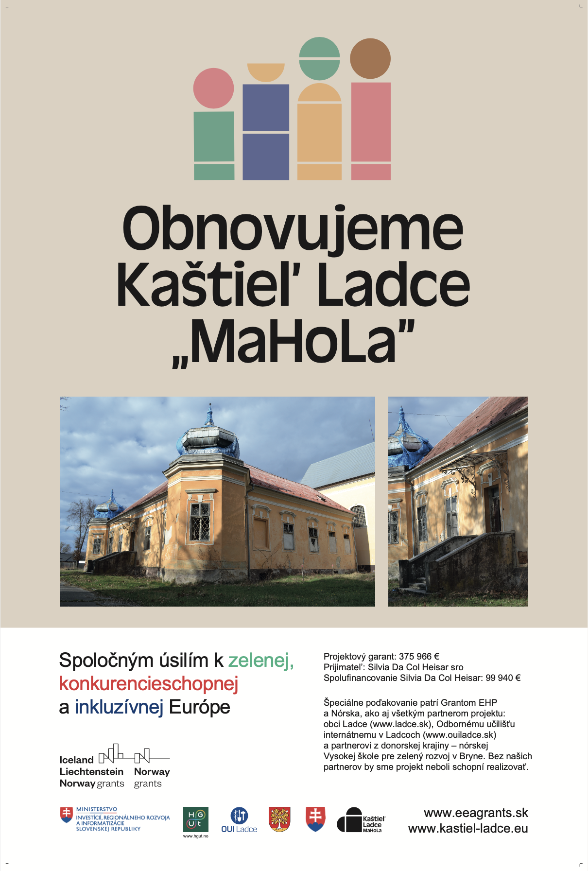 On May 21, 2021, the opening conference of the project of restoration of a part of the manor house was held in Ladce. The conference participants exchanged information about the planned restoration in an online form, which is, unfortunately, a tax on the recent unfavorable situation. We also welcomed special guests from Norway and the Ministry of Investment, Regional Development and Informatization of the Slovak Republic to the conference. After the conference, the ceremonial opening of the project took place in the area of the manor house, which also included the consecration of the cornerstone of the restoration of a part of the manor house in Ladce. Follow us and you will not miss any news.